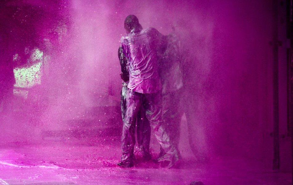 当地时间2011年5月10日,乌干达首都坎帕拉,警察在示威行动中向乌干达反对党领导人喷洒有色水。约韦里-穆塞韦尼总统承诺驱逐抗议者,同时谴责因干旱和全球原油价格上涨导致的食品和燃料花费上涨。 James Akena/摄