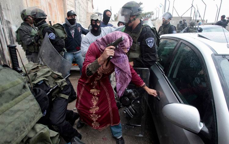 2011年5月15日,约旦河西岸,一名乔装成巴勒斯坦妇女的以色列秘密警察突击搜查一辆汽车。 Baz Ratner/摄
