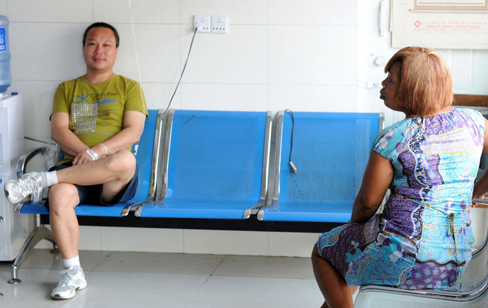 巴塔市一家中国诊所内候诊的人。《援外手记:中国人在非洲》一文曾称,巴塔市有10余家中国诊所,家家生意都好。中国国内非常便宜的药品,比如七块多一瓶的止痛片(1000片),在这里一片就卖100中非法郎(约合1.4元人民币),有一半以上的诊所由浙江温州和青田两地方人所开。