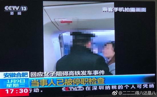 据合肥高铁站通报称,1月5日,一名带着孩子的女乘客以等老公为名,用身体强行阻挡车门关闭,铁路工作人员和乘客多次劝解,该女子仍强行扒阻车门,造成该列车晚点发车。