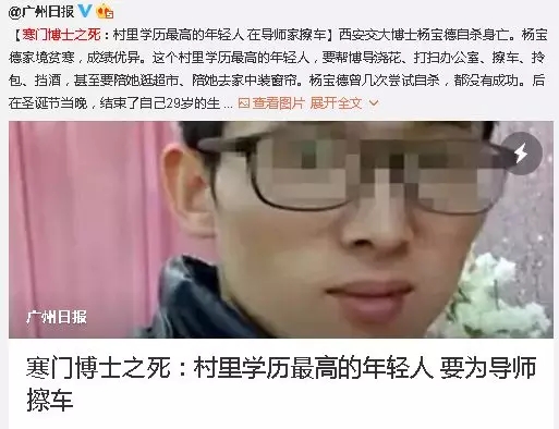 如果想在高校做教师,必须要读博才行,文中也有说,文中说的条件还要出国留学一年呢。在高校做教师可以解决户口、小孩读书、社保医保福利等等问题,是一份比较体面的工作,对于寒门子弟来说吸引力还是很大的。特别是对于文中这位杨宝德来说,他性格比较孤僻不够外向,不太容易在社会上就业的,所以对他来说,做高校教师可能真是唯一的出路了。当唯一的出路都被断绝的时候,真的是会走上绝路的。当然,这件事最大的原因还是他性格有问题,自己钻牛角尖,但他的导师也有很大的责任,这样的人渣怎么能够做导师?这样白白自杀太可惜了,要是我肯定先将导师杀了再去死。[32]