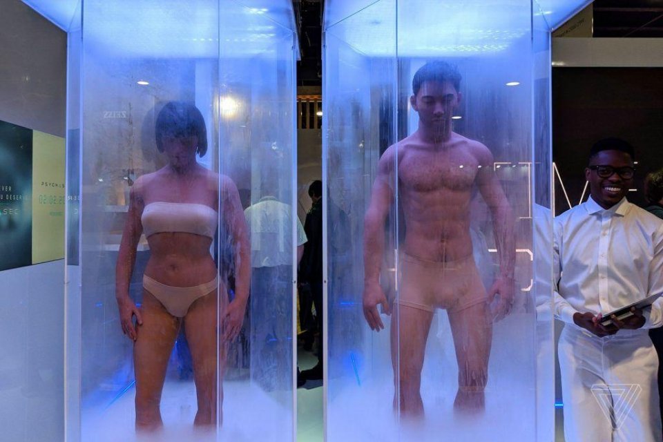 身着白衣服的参展商工作人员介绍,PsychaSec 一直在进行着秘密的研究,致力于帮助人类按着自己的意愿改变自己的身体。到了今年,终于有了技术性的突破。