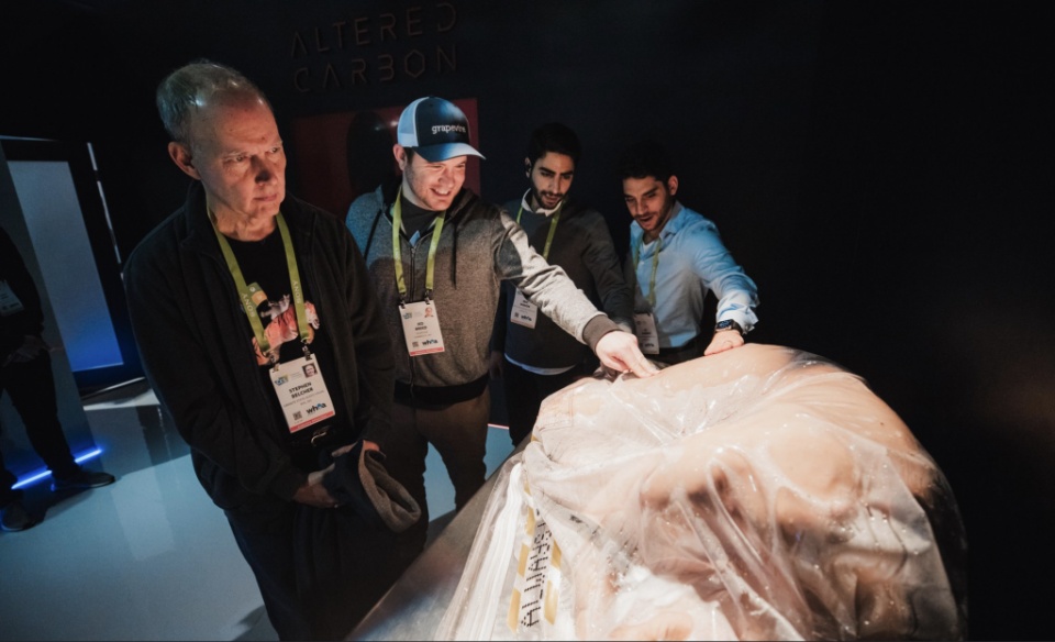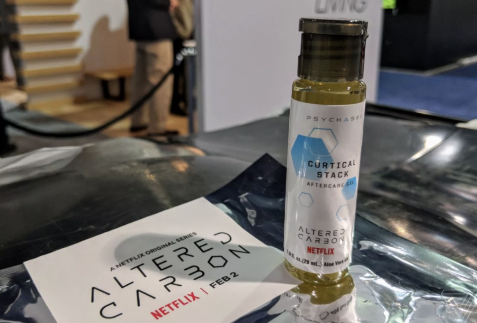 其实,人造身体,记忆移植,通通都是假的。这个展位是 Netflix 为新剧 Altered Carbon 造势而设立的。而 PsychaSec 就是剧集中提供人体移植的公司。
