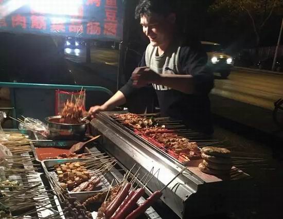 "首先是备货,肉串一定得多备着点,卖的最好,还有小饼、馒头、面筋之类的主食大晚上也扛饿,得有。哦对,女生买鸡翅的最多,至于素菜,多变变花样,每天有几样就行。都吃烤串了谁还在乎胖瘦啊,啥没有都得有肉。"
