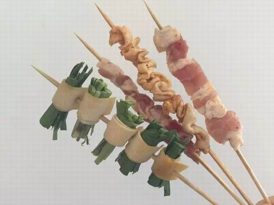 ▲.朋友圈穿串报道,金针菇腐皮卷.?.串哥的朋友圈