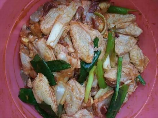 鸡翅也得提前腌好,放点葱段去去腥,别图省事提前好几天腌上,不新鲜;