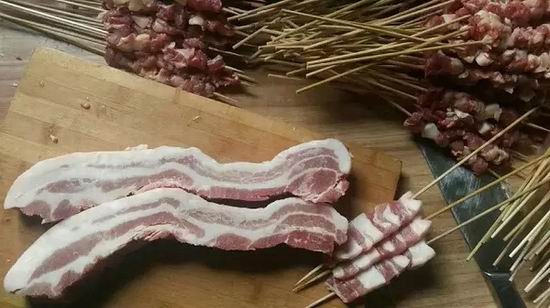 五花肉,要选肥瘦相间的五花肉最好的地方,千万记得把皮"打"掉,不然客人嚼着费劲;
