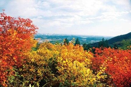 位于颐和园西北三公里的百望山公园是距市区最近的红叶观赏地,而百望山的红叶种类之多在京城也算数一数二。一年三季的美国红枫、荷兰红栌、美人梅、紫叶李,再加上火炬、地锦、元宝枫、黄栌、柿树、五角枫等秋季独有的红叶佳品,从金黄到深紫各个颜色分布均匀。爬到山顶向下俯望,仿佛一条条铺于山中的彩带,竞相争艳热闹非凡。