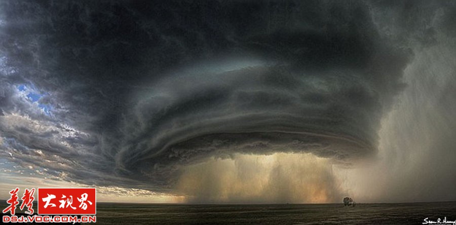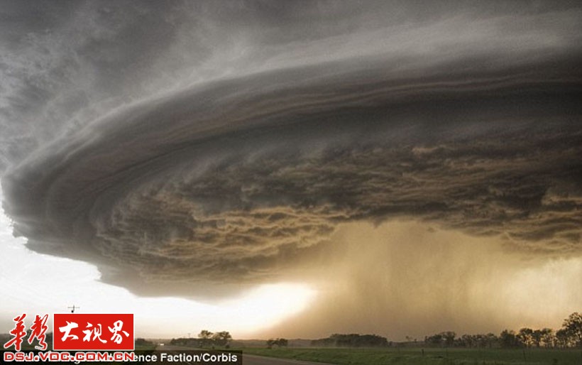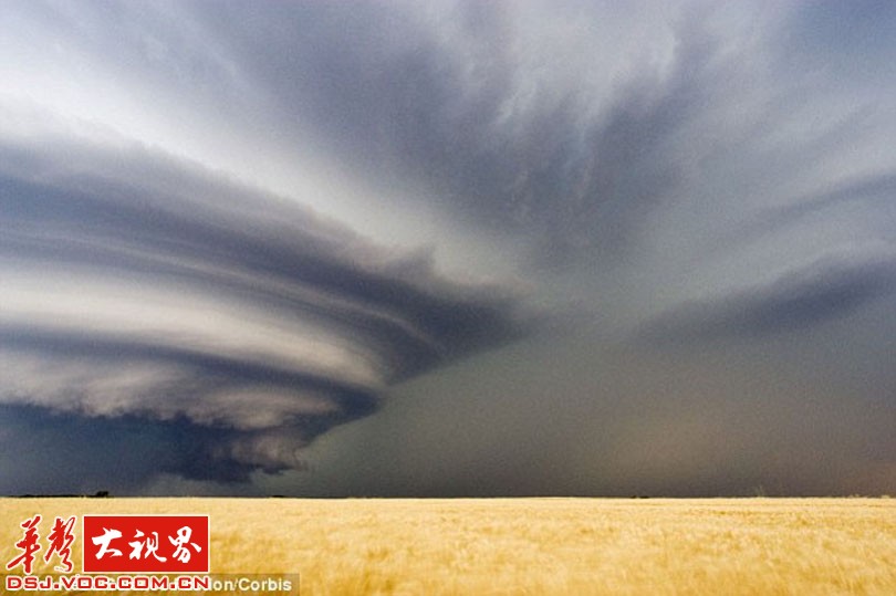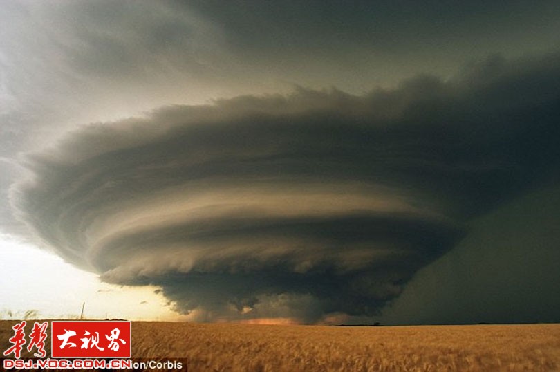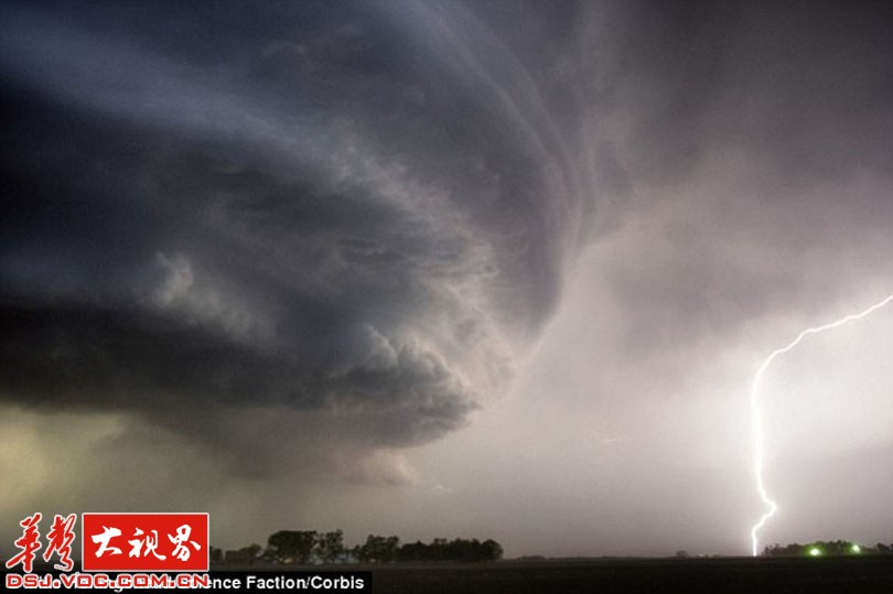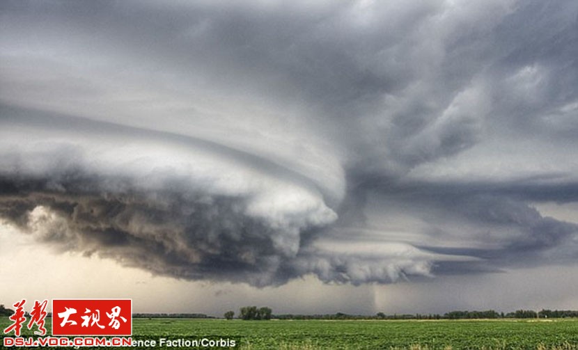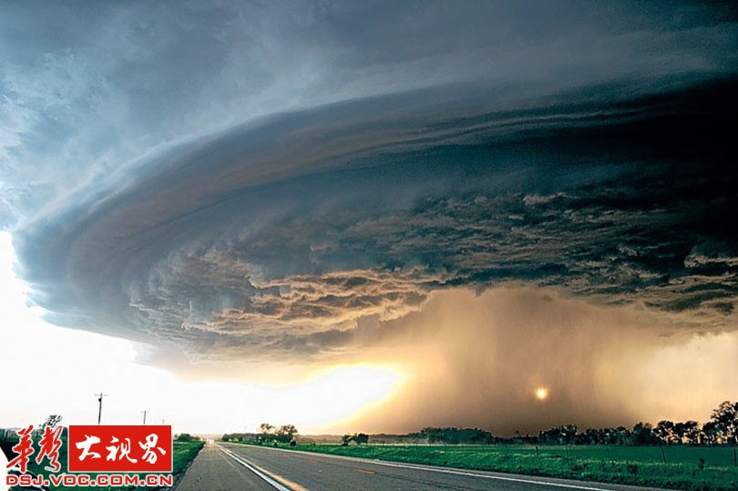 下面这些看起来像来自外太空的东西,它们是罕见的超级雷雨云。雷雨云是一大团翻腾、波动的水、冰晶和空气。当云团里的冰晶在强烈气流中上下翻滚时,水分会在冰晶的表面凝结成一层层冰,形成冰雹。这些被强烈气流反复撕扯、撞击的冰晶和水滴充满了静电。旋转上升的气流,可以跨越几公里,暴雨随着龙卷风而来。