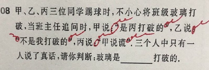 朋友在群里贴了一道小学的逻辑题,难度不大,很容易就能得出正确答案:是乙打破了玻璃。但是我再一次浏览这道题时,却觉得隐藏其后的人性并不简单。