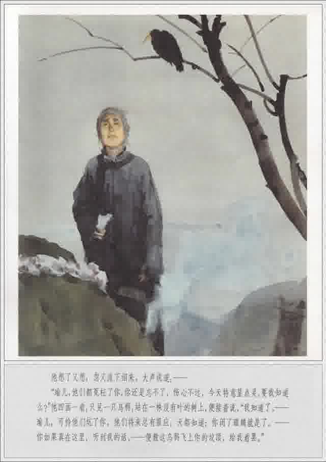 那老女人又走近几步,细看了一遍,自言自语的说,“这没有根,不像自己开的。——这地方有谁来呢?孩子不会来玩;——亲戚本家早不来了。——这是怎么一回事呢?”他想了又想,忽又流下泪来,大声说道: “瑜儿,他们都冤枉了你,你还是忘不了,伤心不过,今天特意显点灵,要我知道么?”他四面一看,只见一只乌鸦,站在一株没有叶的树上,便接着说,“我知道了。——瑜儿,可怜他们坑了你,他们将来总有报应,天都知道;你闭了眼睛就是了。——你如果真在这里,听到我的话,——便教这乌鸦飞上你的坟顶,给我看罢。”