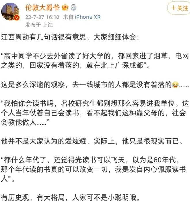 而在上述近期热点之外,属于婆罗门的传统叙事,是江西周公子朋友圈的骑脸输出,是濮阳三代烟草人的传承与守望,是上位者对下位者的冒名顶替,是羡煞一众老奴的万柳书院。话说回来,三代清洁工肯定不会有人眼红,问题是周公子们占据的,恰恰是普通人很难挤进的铁路、电力、石油等部门。