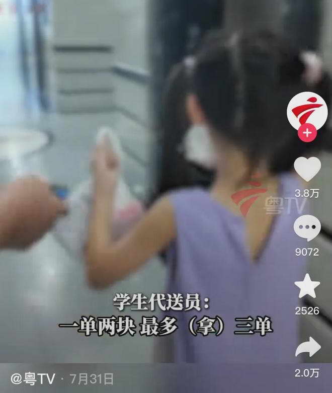 阿姨称:“一天代送能有 500~600 单,忙不过来时,就分发出去”。分发给孩子后,阿姨会抽走一块钱的 “中介费”。
