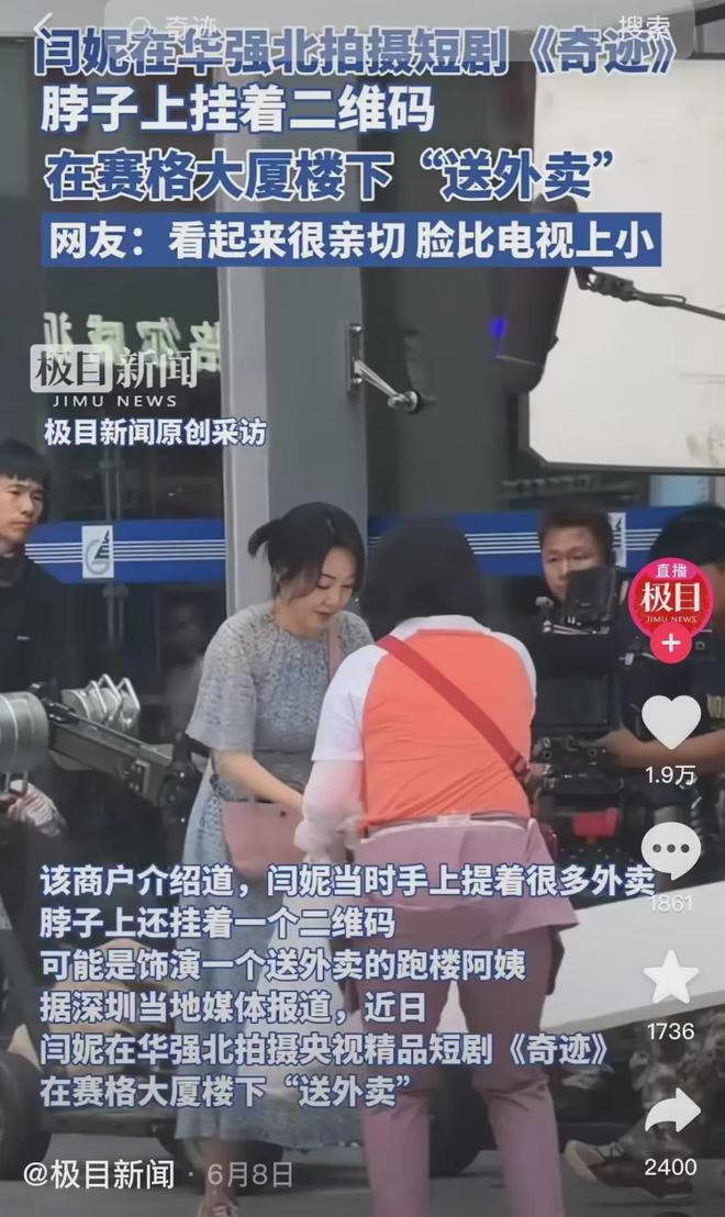 最近正在华强北拍摄的短剧《奇迹》中,演员闫妮就饰演了一位 “跑楼阿姨”。