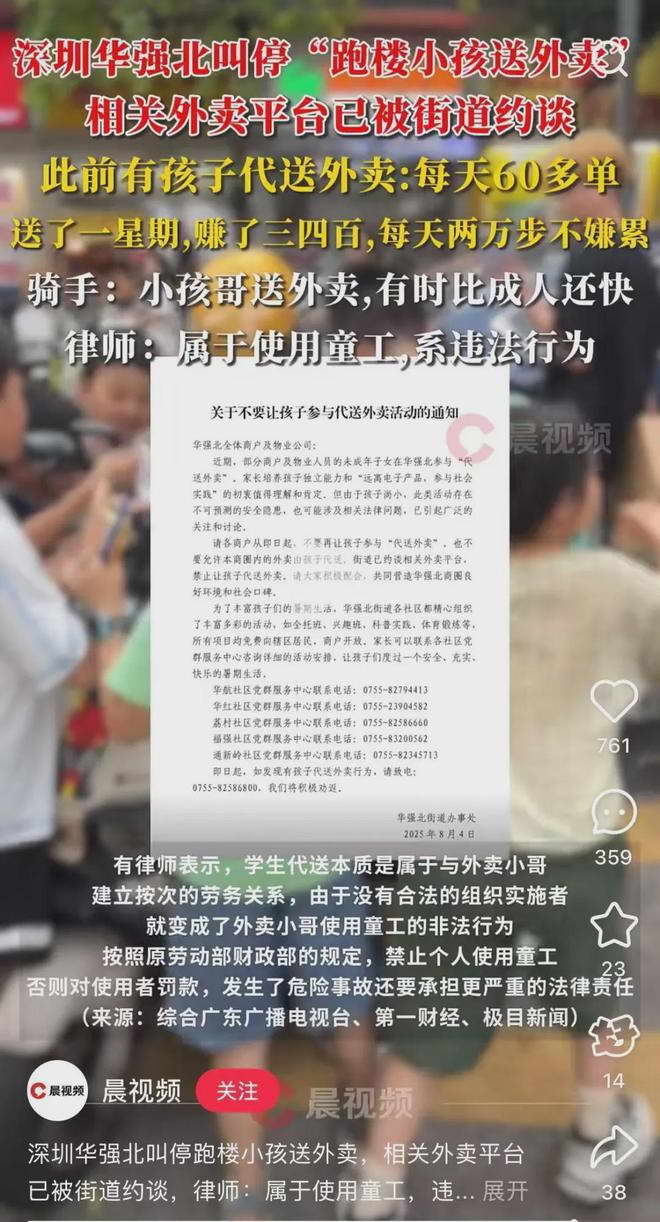 前几天华强北街道下发通知,禁止了未成年人代送外卖,小孩们被迫停止了营业。
