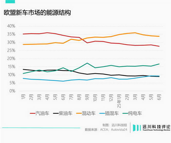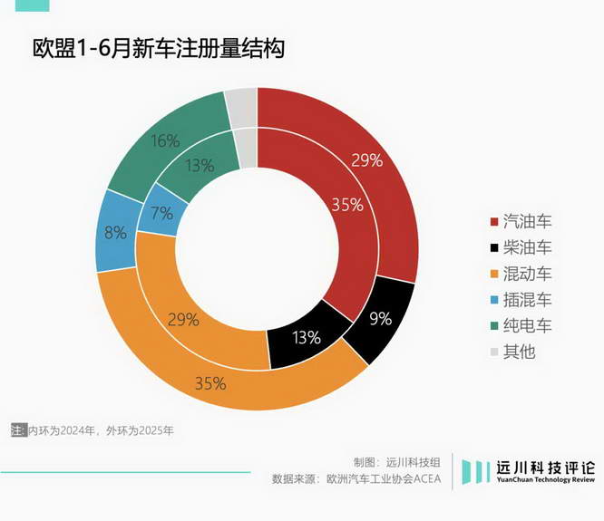 同时,欧盟长期将混动车型纳入补贴范畴,混动 / 插混占据欧洲新车销售的 40% 以上,是纯电车型的 5 倍多,和国内的销售结构存在结构性差异。