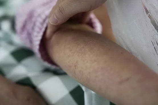 但疼痛来得迅猛。7 月 26 日早上,许玲起床后,感到全身的关节像被扭伤一样,手腕、膝盖、脚踝好像 “筋被扯住了”。到中午,身上冒出红色的皮疹。她赶到区里一所三甲医院,测了体温,正常,又抽了血。在等结果的四个小时里,疼痛持续加重,许玲几乎站不起来。她说:“生孩子也没有那么痛。”