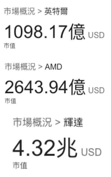 没有对比就没有伤害。10 年前, 10 个 AMD 和 10 个英伟达加起才等于一个英特尔,而现在 AMD 的市值是英特尔的 2 倍多,英伟达的市值快要到英特尔的 40 倍了。