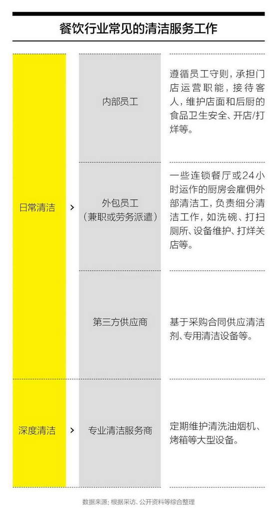 现在,潘怡生意的增长点来自餐饮连锁化和夜间经济。除了餐饮和茶饮品牌,他的公司还拿下了健身房、电玩城和儿童游乐场的订单。在中国,清洁服务在中国尚未跑出专业的大型服务商,他期待夜洁计划能 “打个样”,吸引更多全国性的连锁品牌。