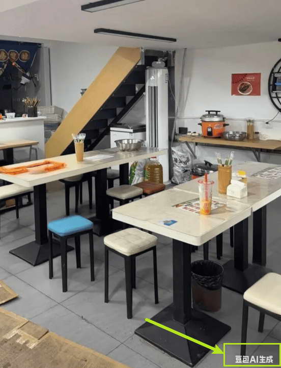 乍一看,干净整洁,窗明几净。结果仔细一瞧,图片的右下角又写着几个大字 ——「 豆包 AI 生成 」。