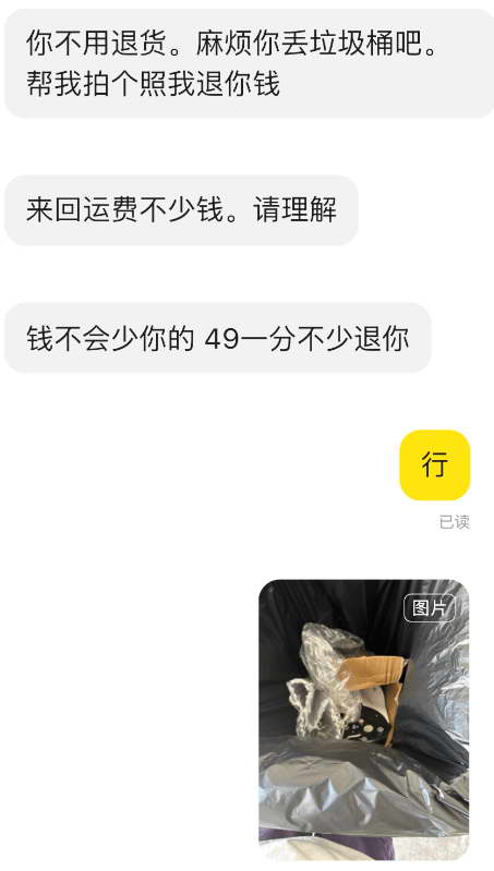 以前想筛选出占便宜的买家,商家都会要求对方扔垃圾桶里,或者是把东西损坏。之前隔壁小黑胖,就遇到过类似的情况。
