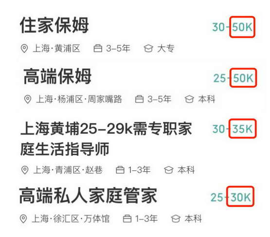 随便在哪个招聘网上看家政服务,上海保姆的工资高的都有八九千,住家阿姨薪资高的可达上万。高端保姆的年薪有 30 万甚至更高