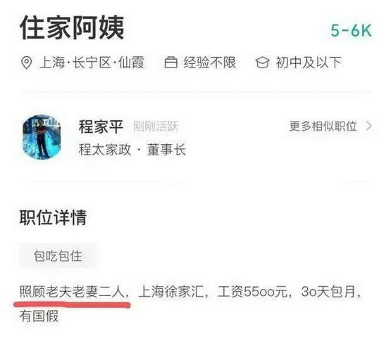 住家保姆职责上也是有精细的划分,比如纯做家务的,照顾老人的以及陪小孩的。单纯照顾老人的就只有 6-7 千 / 月