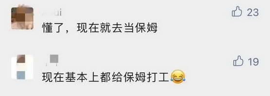住家保姆这么香,不少网友调侃,也要去当保姆