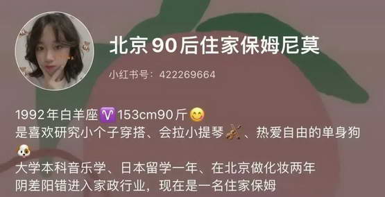 我之前就在小红书上,看到一个北京 90 后本科生,会日语懂音乐还留过学,做着住家保姆的工作