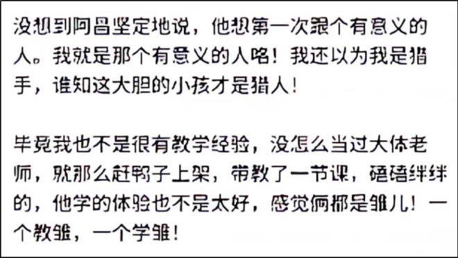 说当时申奥是处男,是她帮他成人的。