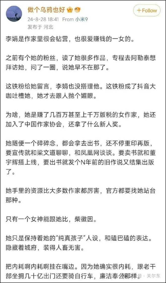 2024 年,电视剧《我的阿勒泰》热播,原作者李娟就被她骂只会钻营取巧。