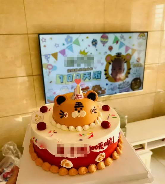 ◎ 刘雨卿在微博上晒出儿子的百日蛋糕