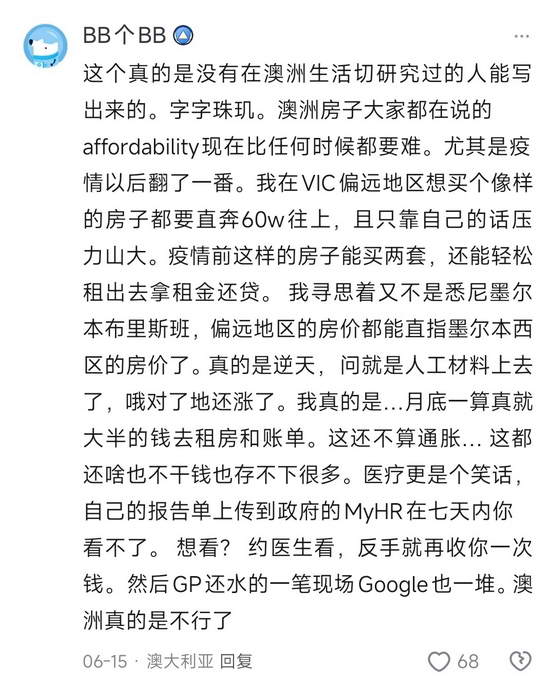 @胜利主义章北海:一位在澳大利亚的网友写的澳大利亚现状,看完很意外。和传统印象中的福利好、物价低、工作轻松、家家牛排皮卡大别野的印象很不一样。