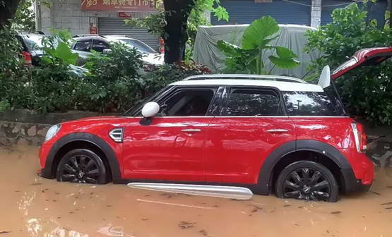 李海迟赶到停车地已是上午 10 点,路面上依然狼藉一片,到处都是淤泥。他检查车子后发现,水淹到了接近仪表盘的位置。后来他通过政府热线了解到,那天的雨量超过了历史极值,才导致了附近的洪涝。