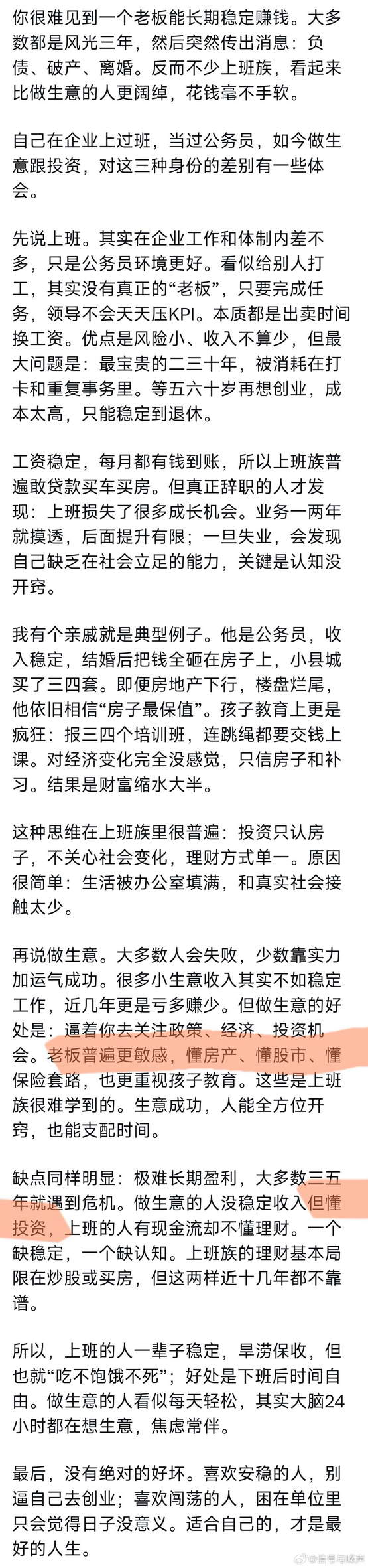 另外,老板也不见得比打工族更重视教育,重视教育≠砸钱,更多的是陪伴、规划,而老板太忙,根本没有时间精力