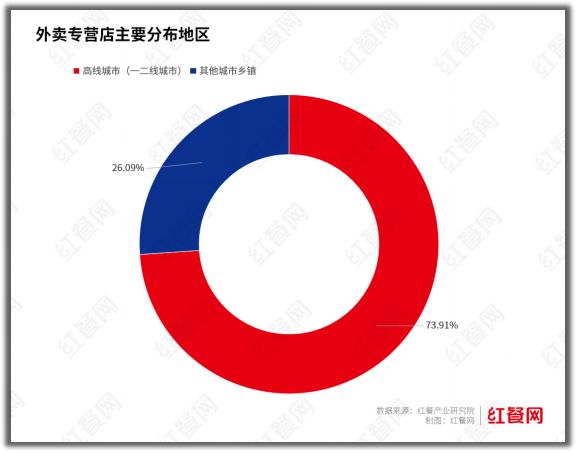 换句话说:出了高线城市,你想找家纯外卖店,那都得踏破铁鞋。