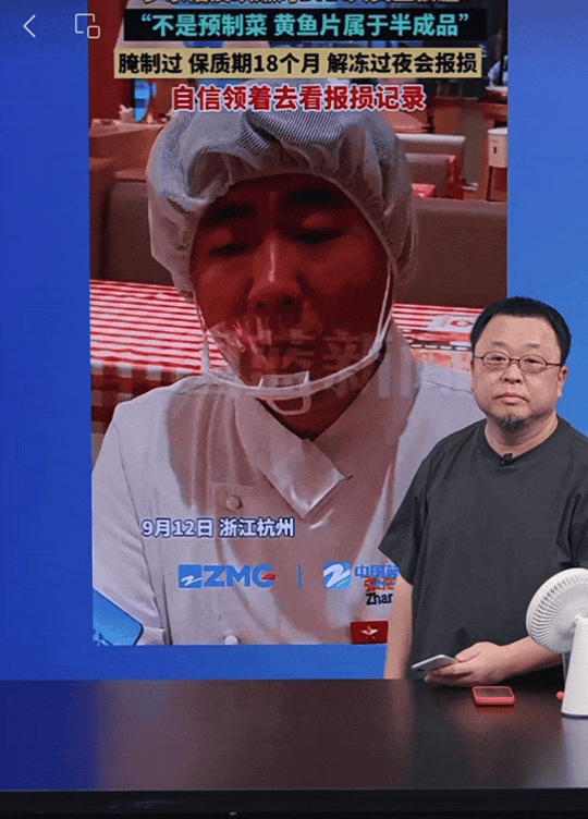 如此费力的自证,却并没有为西贝赢回 “清白”,反而提供了能被 “对线” 的素材。罗永浩在直播间回顾了中国蓝新闻拍摄的一段视频,西贝的厨师介绍,“煮好的羊排能用三餐,今天上午一餐,下午一餐,明天上午还能卖”,厨师很老实地解释,“菜品是会存在隔夜情况,因为半成品可以冰冻过夜”。一个暂停,罗永浩开始划重点:“他们自己说的是隔夜菜啊。”
