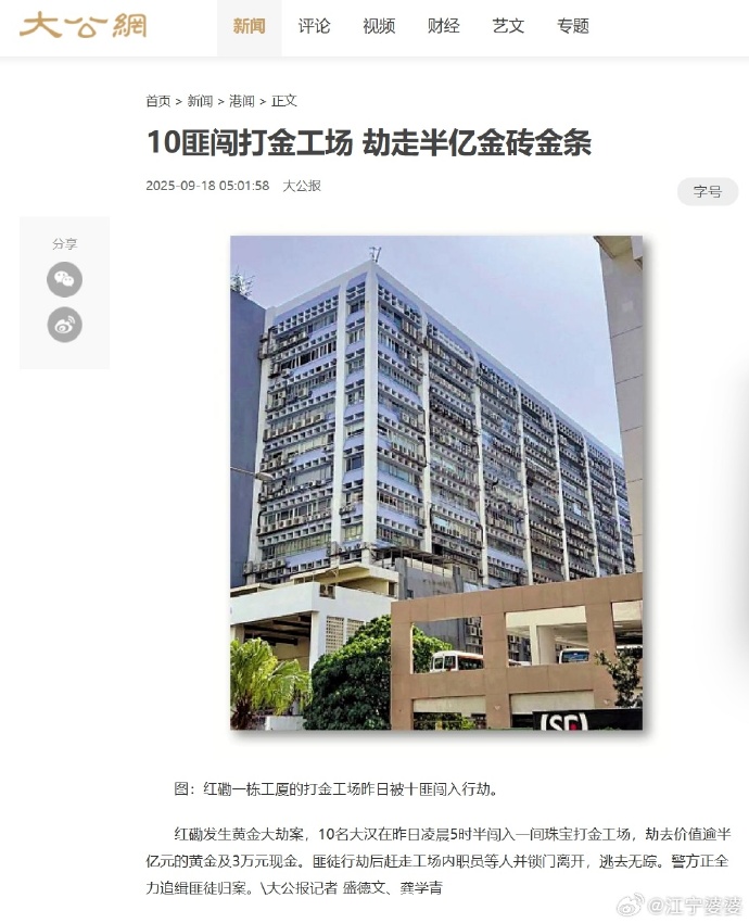 @菊厂刘掌柜:#香港黄金劫案 #看得我有点恍惚了,今夕是何年,什么年代了,还有打劫黄金工厂的,一下子抢走了 65 公斤黄金,价值几千万