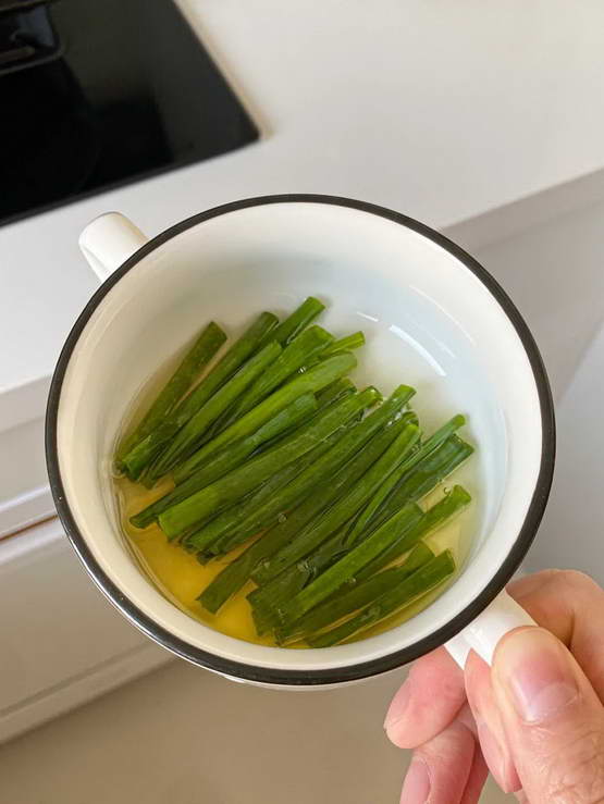小碗放葱花 + 生抽 + 老抽 + 糖,淋一勺热油(油可以提前微波炉加热 1 分钟)。同时另个碗煮面条(yes!微波炉煮面:水面比例 1:4,高火 6 分钟不断搅),捞出拌酱,5 分钟吃上米其林级葱油面!