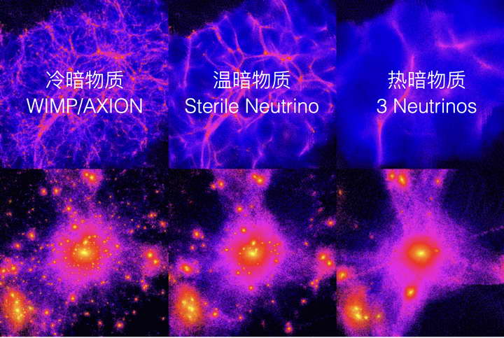 暗物质 “温度不同”,宇宙结构完全不一样。如果宇宙是中微子构成的,只有很大的宇宙 “纤维” 和巨大的星系能够在今天来得及形成。