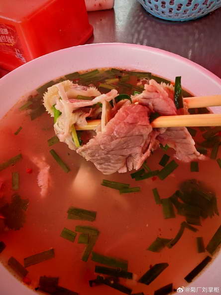 每天早上出摊,热气腾腾的汤锅放门前,肉都切好,快速让客户说买多少钱的即可,不上任何平台,就做周边 3 公里的生意。