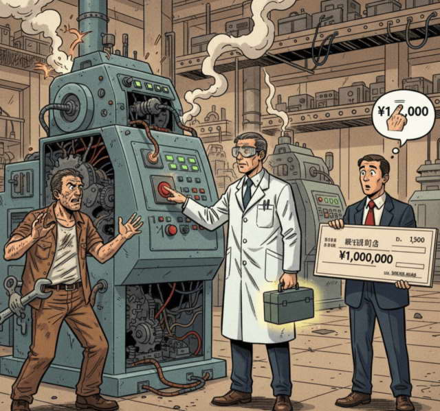 某台设备发生了故障,公司请专家来修理。专家到场后,只是在某个地方按了一下开关,机器立刻恢复正常。专家开出费用 100 万:一百块是劳动成本,剩下的高额费用是 “知道应该按哪个开关” 的经验和技术价值。