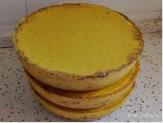 于是,我就尝试让蜂蜡更纯净的方法,在摸索了一个星期后,摸索出用两次熬蜡、分粗细两次过滤的方法,得到了纯净的蜂蜡,倒进模具凝固后,明显的艳黄色,很是漂亮!