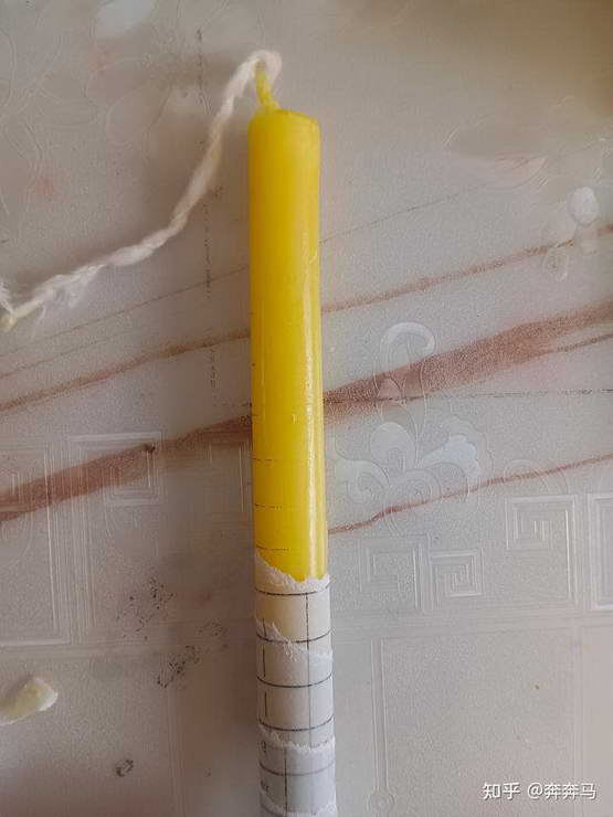 说干就干,我用 A4 纸简单卷了一个纸筒,在纸筒中拉好棉线,再将熔化的蜂蜡趁热倒入纸筒中,凝固后就做成了一根蜡烛。试着点燃,能稳定燃烧,燃烧过程中也没有异味,完全不逊于小时候停电后印象中的石蜡蜡烛。