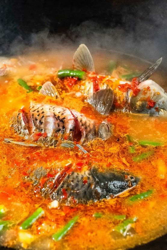 这种 “平衡” 的秘诀,被老祖宗藏在了字里行间 ——“鲜” 字拆开,正是鱼、羊两个字,要化解羊肉的腻,吃鱼可是再好不过了,二者一荤一鲜,一浓一淡,把秋天的滋味拿捏得刚刚好。比如在黑龙江五大连池,秋天的矿泉鱼经过一夏天的生长,肉质紧实弹牙。东北人最懂它的好,直接请上豪迈的大铁锅,咕嘟咕嘟一炖,鲜味被完全激发,恰好与羊肉共同构成了北方秋日滋养的味觉两极。