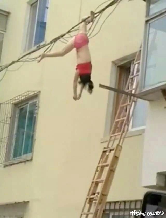 女子在家擦玻璃时坠楼,倒挂电缆线上