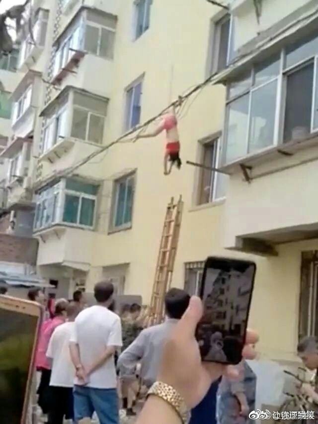 一50岁的女子在家擦玻璃时不小心失足从5楼窗户坠下。幸运的是,该女子倒悬在了二三楼之间的电缆线上。消防赶到时,该女子因受到惊吓已经昏迷,双腿叉开、双手下垂,一动不动。该女子现已无大碍。