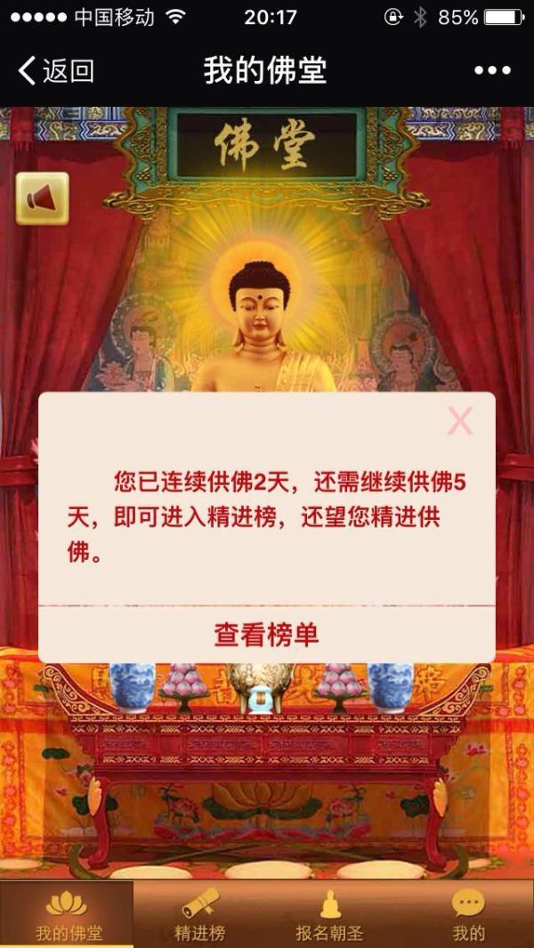 有些公众号甚至能记录连续供佛天数,达到一定数量还可以进入“精进榜”,简直是把手游签到那一套都学会了。