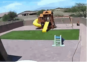 美国一位网友发现院子里突然多了个蹦床,一看监控