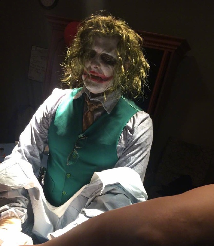 Reddit上一个网友表示他堂妹在万圣节那天晚上生宝宝,帮她接生的医生长这样.......